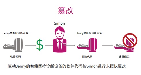 下述善意篡改的示例是醫療診斷設備。該內部軟件專為控制診斷測試運行而設計。可能某個終端用戶認為系統過慢,決定篡改軟件代碼,只為使其計算加速20%。任務完成——他們現在每天可以檢查更多病人了。沒有惡意,隨便了。