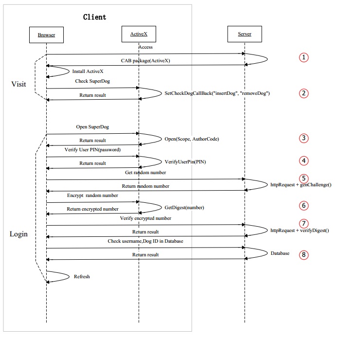 超級狗利用內置算法采用查詢響應的方式對訪問者身份進行驗證和確認。
