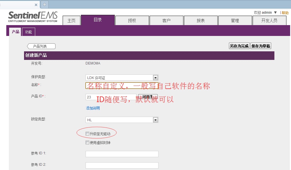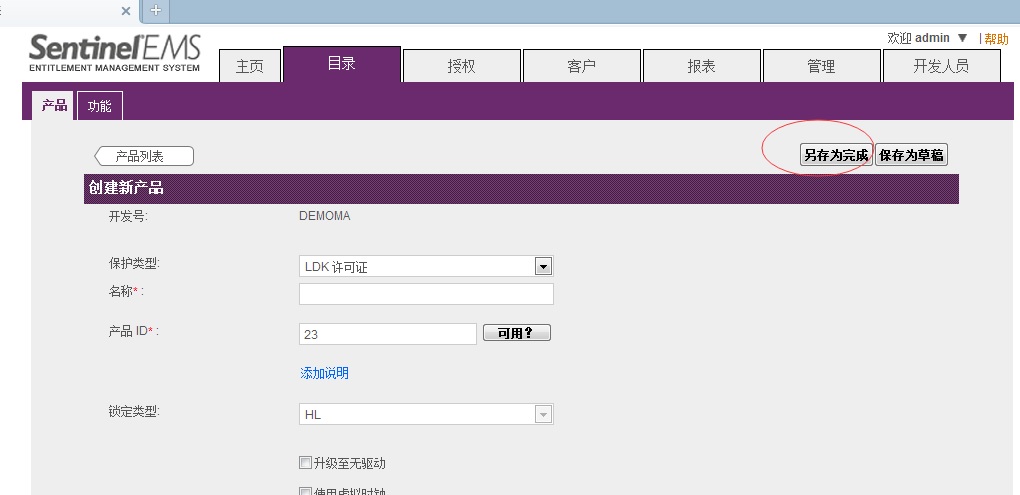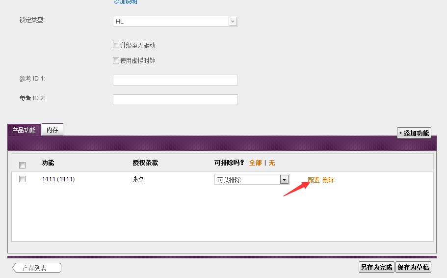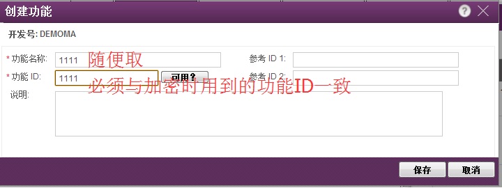 創建功能,這里的功能ID就是加密時選擇的feature ID,必須一致;功能名稱隨便取,一般與功能ID名字保持一致。填完以后點保存。
