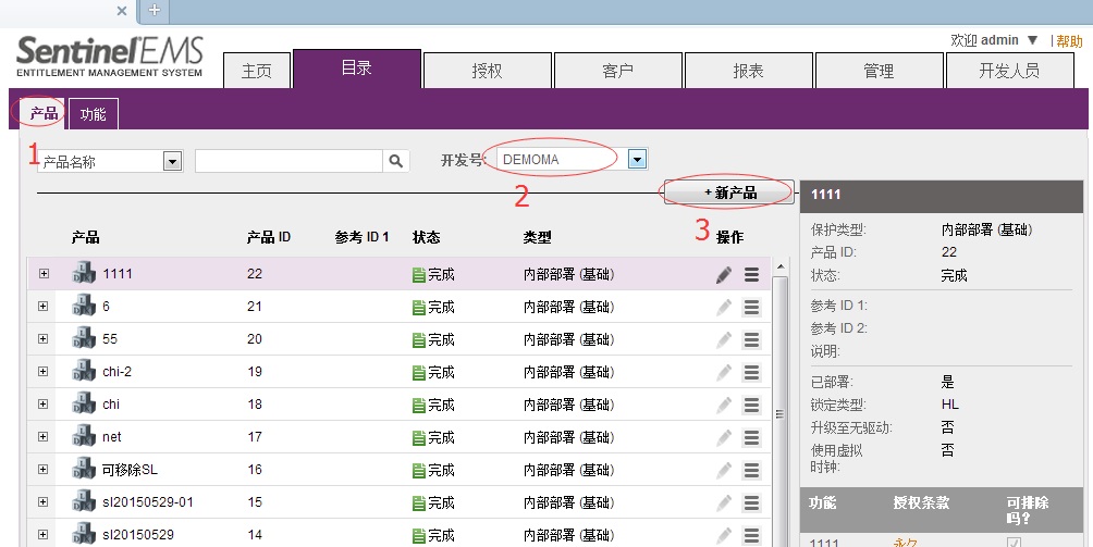 按1產品,2選擇開發號,3新建產品這樣的步驟操作。