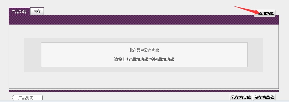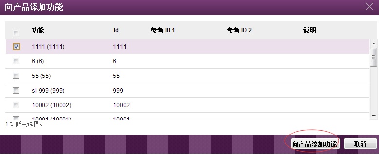 選上之前定義好的功能,并點擊“向產品添加功能”