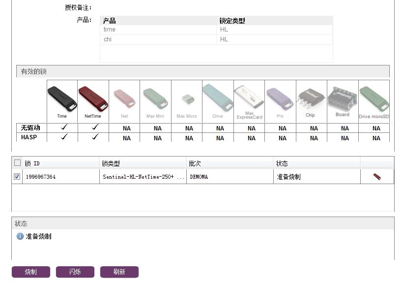 3、新建訂單、燒鎖-----設置好要燒鎖的數量、對應的軟件產品,開始寫鎖。