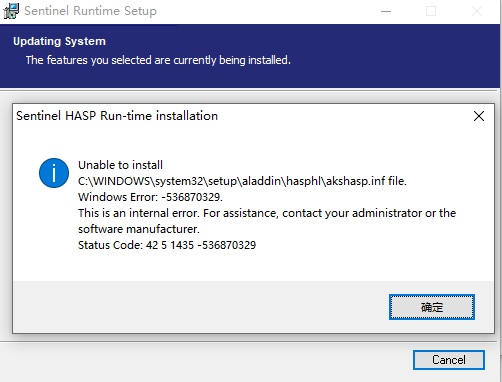 安裝圣天諾LDK驅動時報akshasp.ini錯誤