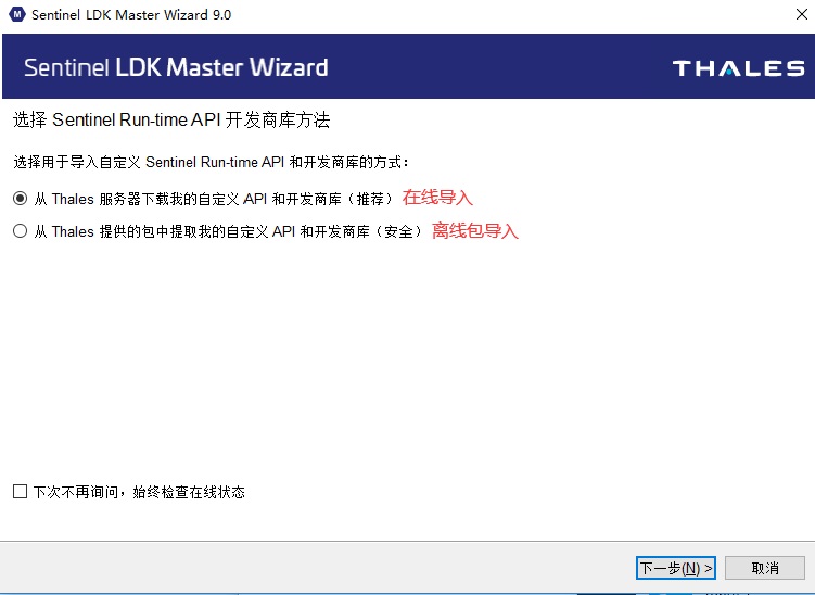 默認是從Thales網站下載,如果不能聯網或者下載過程中報錯, 可選擇從Thales經銷商提供的離線包中提取。離線包可向經銷商申請,一般需要一個工作日。