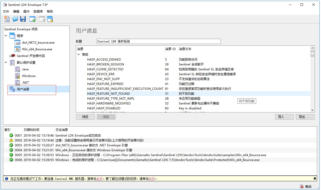 程序加密后運(yùn)行時(shí),會(huì)根據(jù)加密鎖的狀態(tài)出現(xiàn)彈窗(如沒有插加密鎖等),如果希望修改顯示的彈窗內(nèi)容,可根據(jù)顯示的消息ID數(shù)值,找到對(duì)應(yīng)的消息文件,修改后重新加密。
